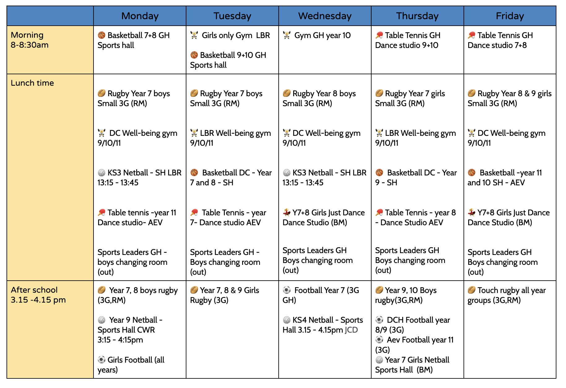 Extra Curricular PE Timetable 2025/26