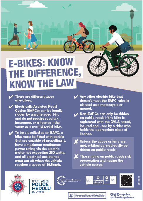 Eastern High is proud to support the latest campaign from Road Safety Wales, which focusses on raising awareness around the safe and legal use of e-bikes and e-scooters. As these modes of transport become increasingly popular among young people, it's vital that students and families understand the laws, risks, and responsibilities associated with their use.